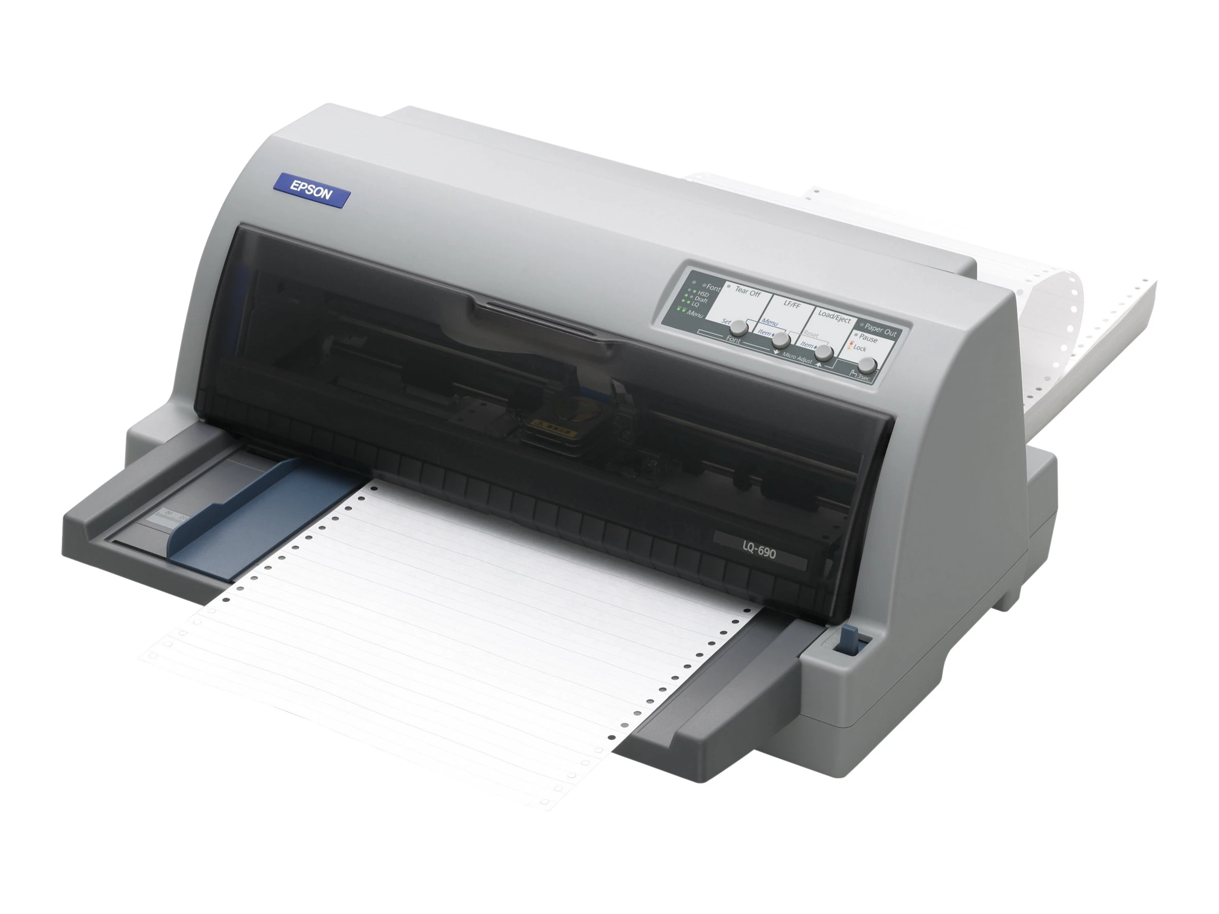 The Epson LQ-690 is a durable, 24-pin flatbed dot matrix printer designed for medium-duty workloads and demanding professional environments. It is particularly favored for its high-speed performance and ability to handle specialized media like multi-part forms and labels.